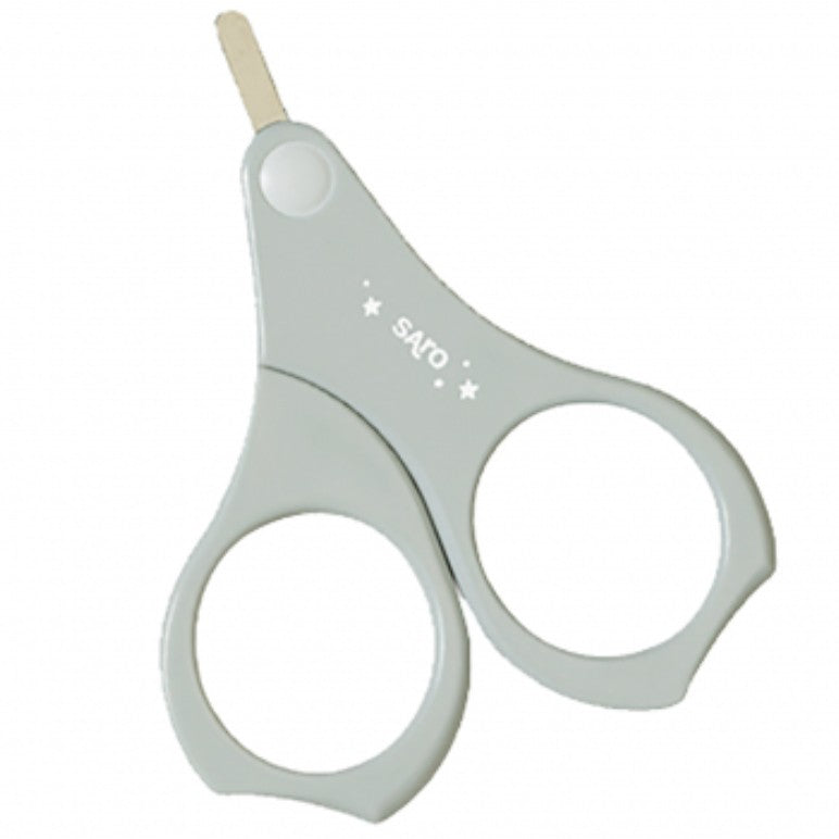 Tijeras para el cuidado de las uñas de la empresa Saro en color azul brillante....