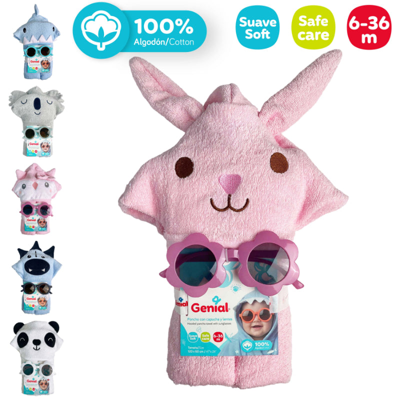 100% Algodón/AlgodónSuaveCuidado Seguro6-36 mGenialPoncho con capucha y lentes100% *Se venden por separado*Modelos sujetos a disponibilidad*Los...