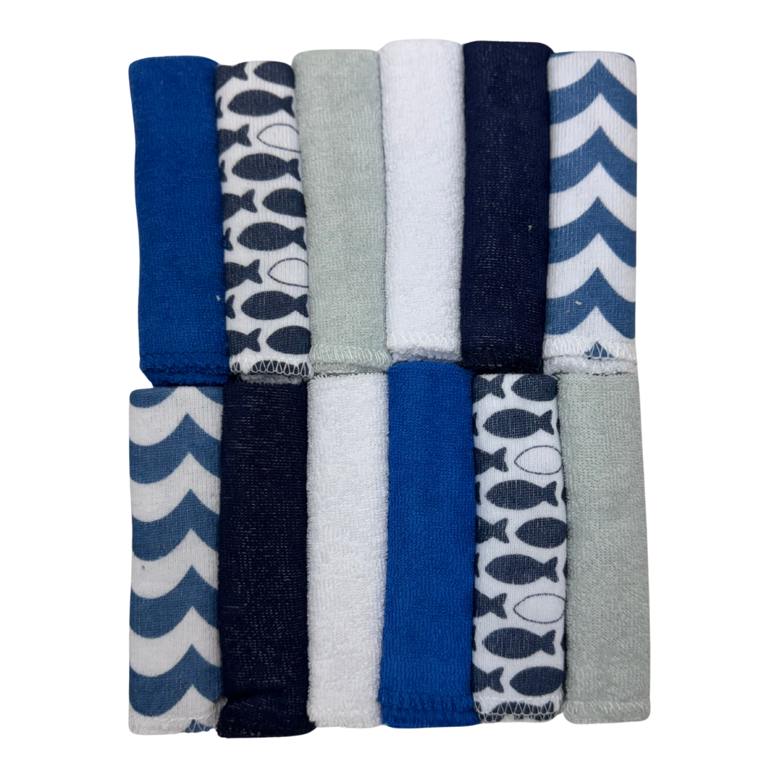 Luvable Friends, Set de 12 Toallitas de algodón azul liso Niño