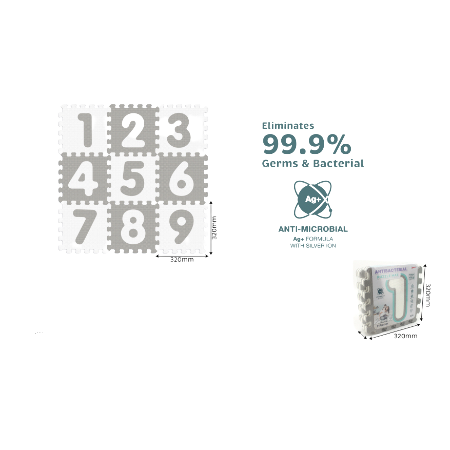 Alfombra Rompecabezas Antibacterial Numeros Gris 9PCS