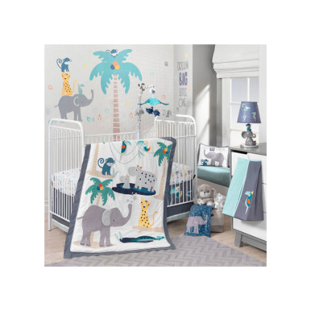 Esta exclusiva colección de ropa de cama para bebés con temática de elefante presenta fabricaciones...