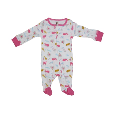 Confortante pijama enteriza rosada de animales con la que tu bebé dormirá cómodamente.