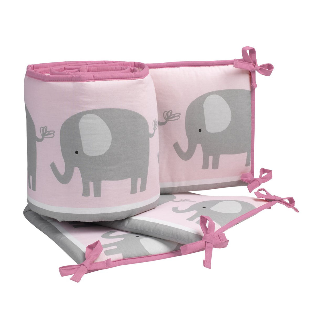 Bumper de cuna de bebé de 4 piezas Eloise Pink / Grey Elephant