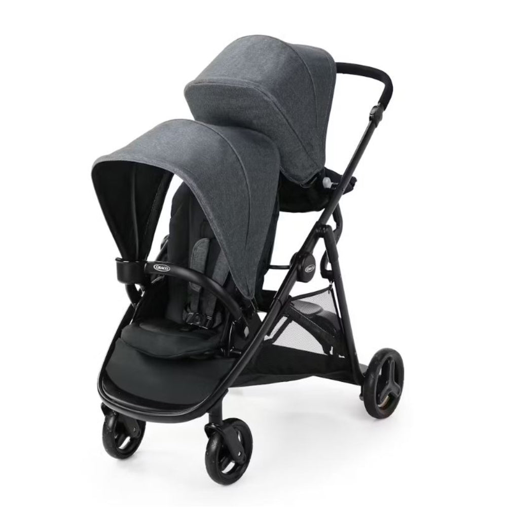El cochecito plegable pequeño se monta como un doble, pero se pliega como un solo...