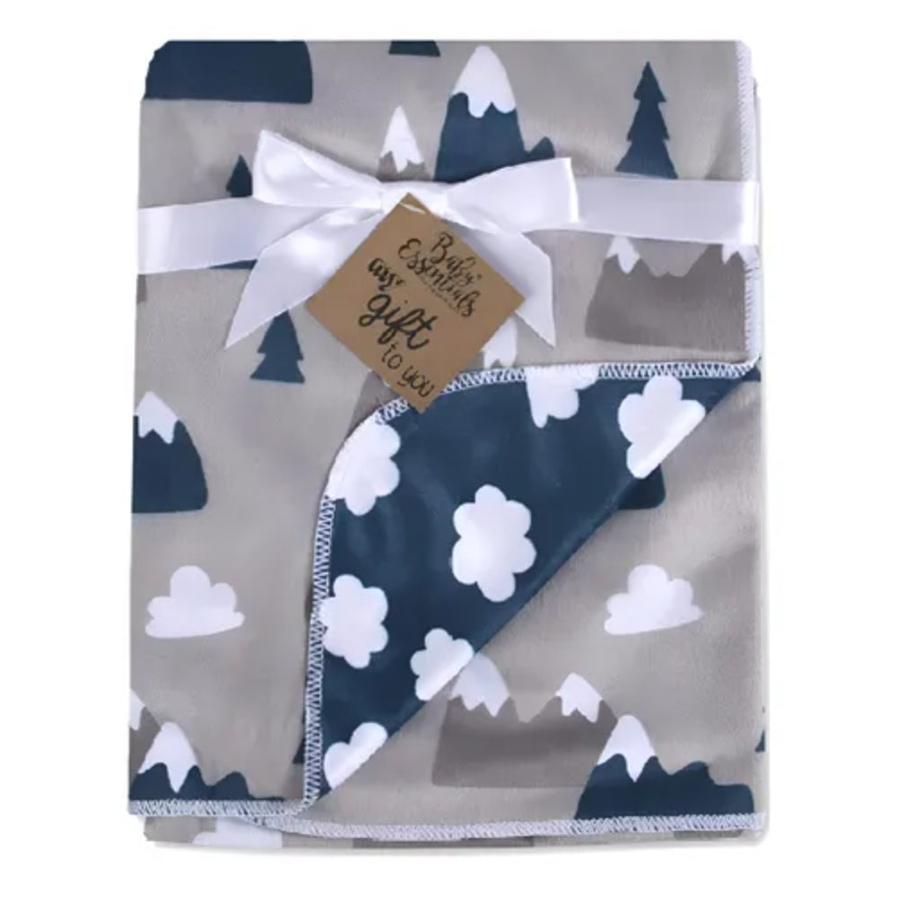 Manta reversible para bebé: la manta de bebé de montañas y nubes para bebé niño o niña incluye una escena de montaña nevada en un lado, con un colorido azul con nubes blancas en el reverso