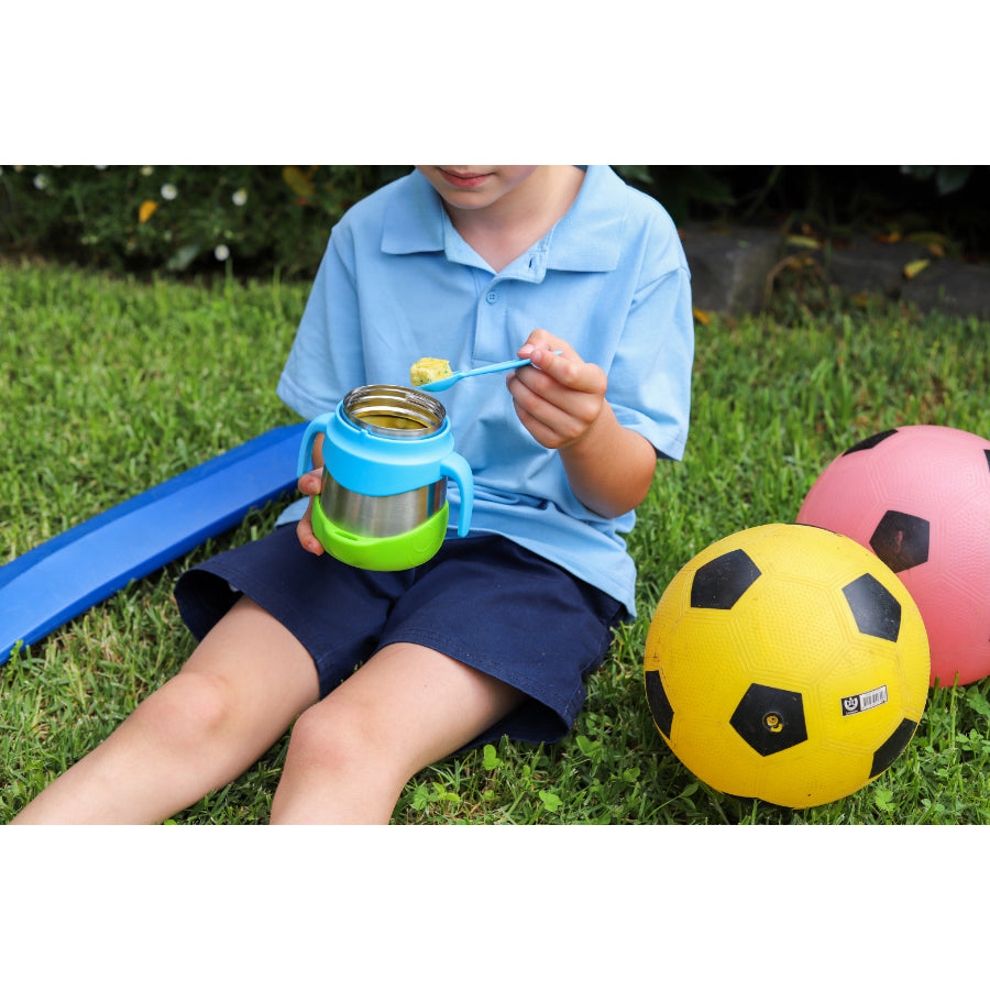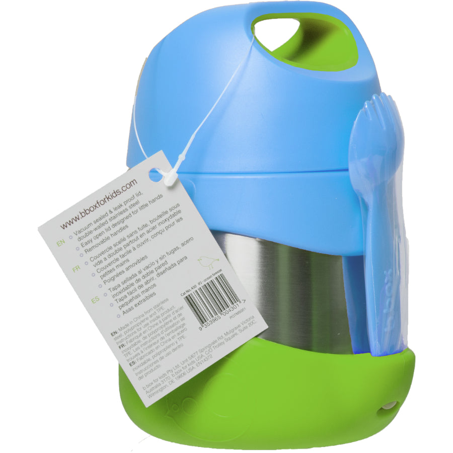 Mantén la comida a la temperatura perfecta con el termo de acero inoxidable de doble capa de B.Box. Mantiene la comida fría hasta 7 horas y caliente hasta 5 horas. Incluye un cubierto spork (tenedor/cuchara) que se guarda en la base de silicona desmontable.