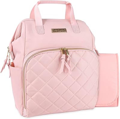 La mochila para pañales es ligera, versátil e incluso se puede enganchar a cochecitos y carritos de compras con sus correas de cochecito de longitud ajustable. Incluso viene con un cambiador acolchado a juego de 6 capas, fácil de limpiar, para que cambiar a tu bebé en cualquier lugar sea limpio, seguro y fácil. Esta moderna pañalera lo tiene todo.