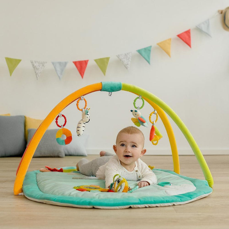 La suave manta de actividades con 5 juguetes extraíbles ofrece diversión para el bebé desde el nacimiento hasta las diferentes fases de crecimiento: ¡la primera manta de bebé perfecta para los exploradores del mundo!
