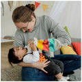 Los sonajeros, chirriadores, el crujido del papel y los brillantes colores de la adorable marioneta despiertan la curiosidad de los bebés y fomentan la vista, el oído, la motricidad y la percepción. Los suaves mordedores ayudan a la dentición.