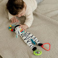 Esta simpática cebra conquistará el corazón de los bebés en un instante. Los pequeños exploradores aprenderán rápidamente cómo hacer que el peluche suene, chirríe, cruja y haga ruido.