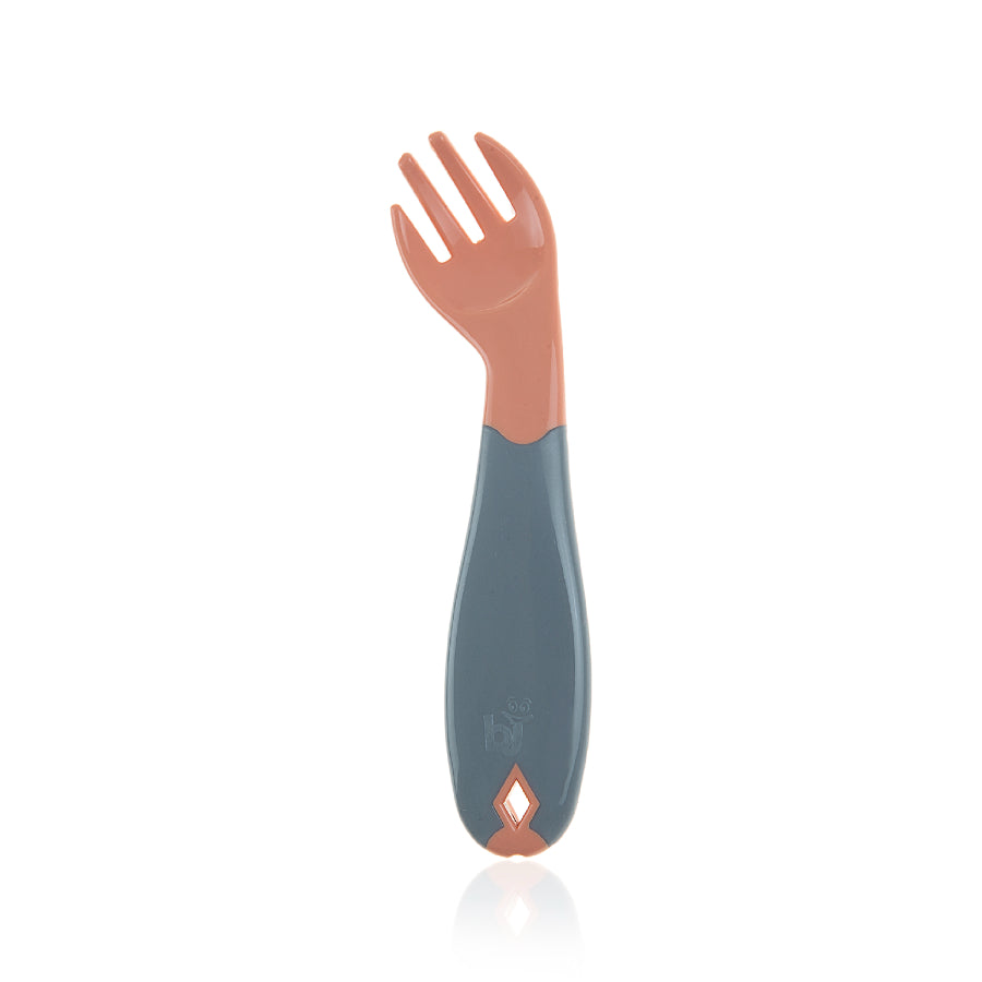 El juego de tenedor y cuchara en ángulo de plástico BABYJEM está diseñado para adaptarse al ángulo del mango para que su bebé pueda sostenerlo fácilmente mientras se alimenta.