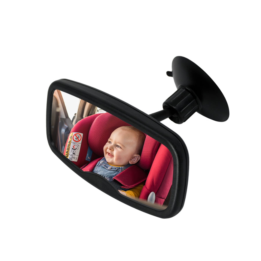 El espejo de gran tamaño es cristalino y refleja al bebé de pies a cabeza, sin distorsión ni puntos ciegos.