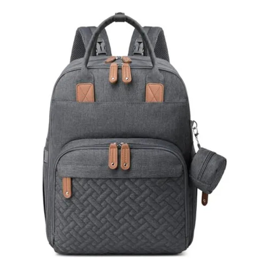 Nuestra pañalera incluye un bolsillo acolchado para portátil, organizadores de malla y otros artículos esenciales. Mantén la temperatura de tus biberones en los bolsillos aislantes, no pierdas las llaves ni la cartera en el bolsillo para mamá y saca un pañal rápidamente del organizador de malla.