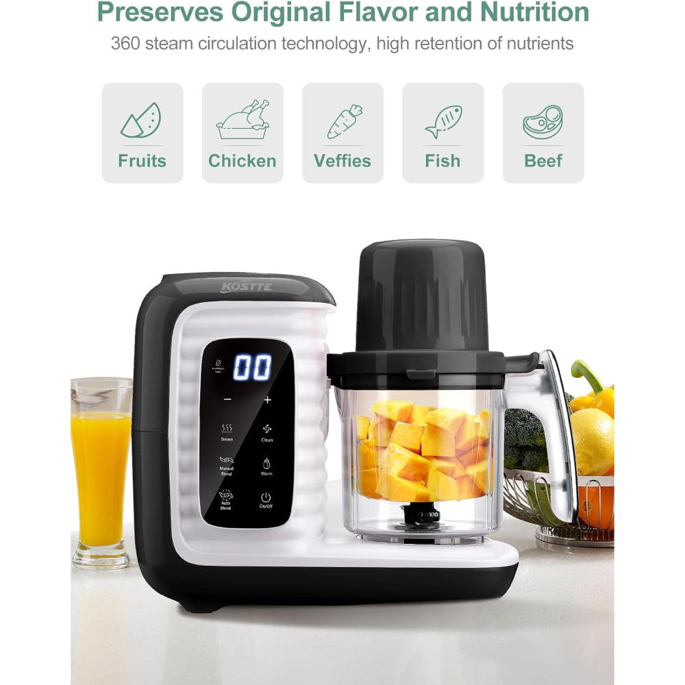 Funcionalidad inteligente 5 en 1 para padres modernos. ¡Optimiza la preparación de comidas de tu bebé con un dispositivo inteligente! Cocine al vapor y mezcle purés caseros, caliente rápidamente botellas de leche y accesorios limpios, todo sin cambiar de electrodomésticos. Perfecto para padres privados de sueño que valoran el tiempo y la comodidad.