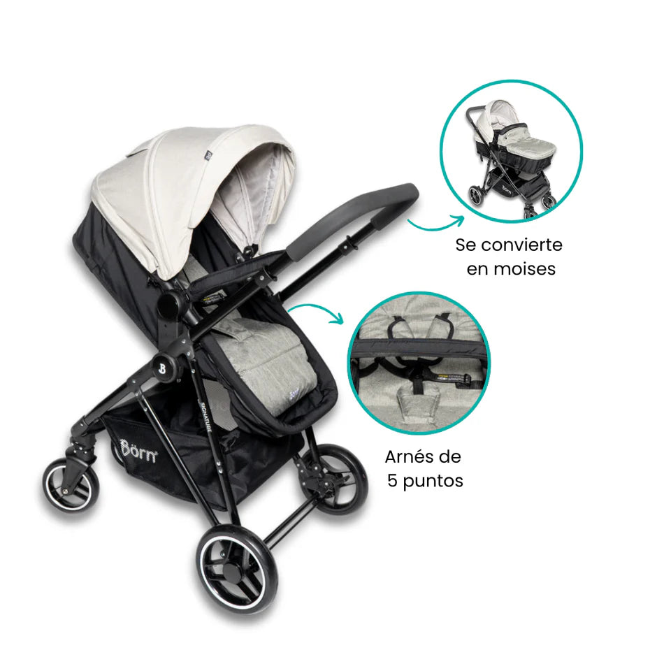El coche Born está diseñado para acompañarte en cada etapa de la maternidad y paternidad, haciendo que cada paseo sea más que un simple traslado: se convierte en un momento especial de conexión con tu bebé. Con su diseño elegante y moderno, se adapta tanto a una caminata por el parque como a las rutinas diarias en la ciudad. Su estructura práctica y ligera ofrece la libertad de moverte sin complicaciones, mientras tu pequeño disfruta de un espacio cómodo y seguro.
