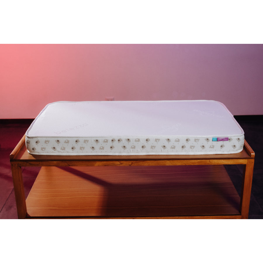 colchón a prueba de líquidos con tecnología TPU no absorbente en tela suave, con muchos más beneficios para que tu bebe duerma mas cómodo que nunca.