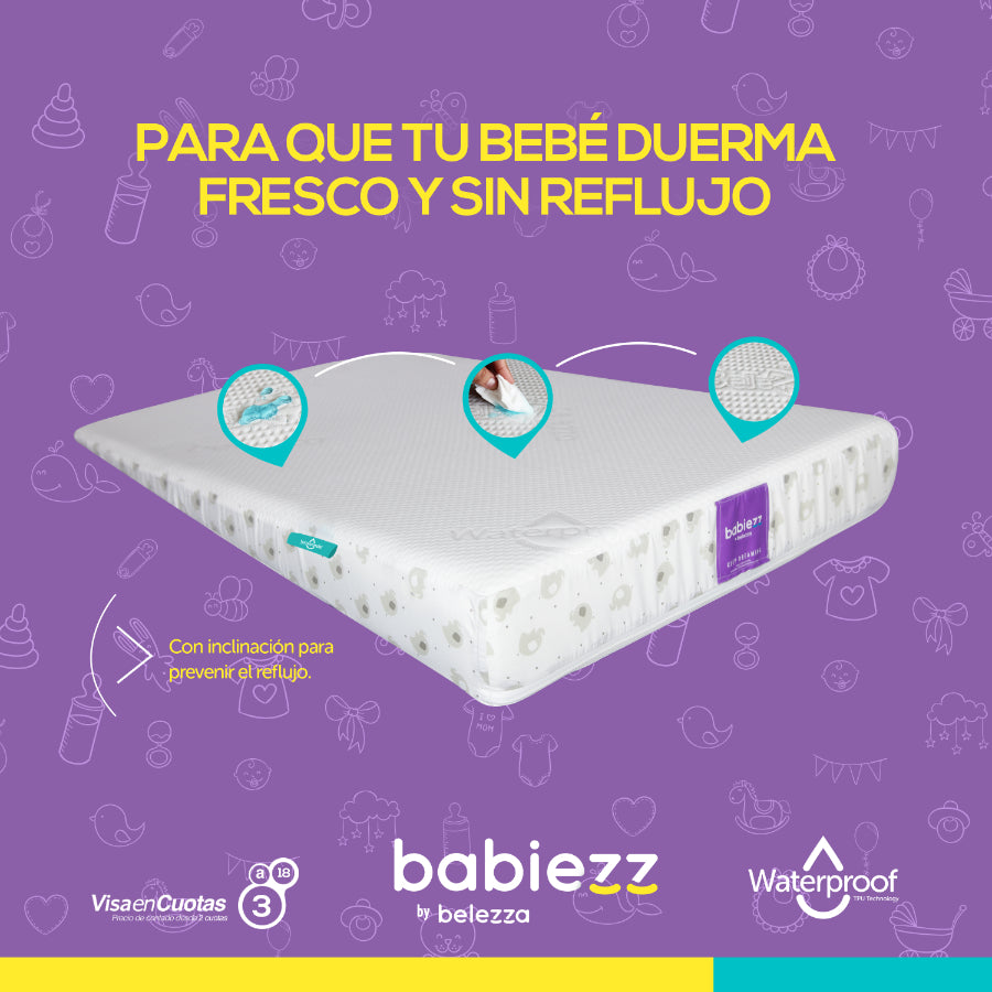Colchón anti reflujo, ayuda tu bebé con los reflujos ya que la cabeza de tu bebé tendrá una ligera elevación con respecto al estomago. Con tecnología TPU no absorbente.