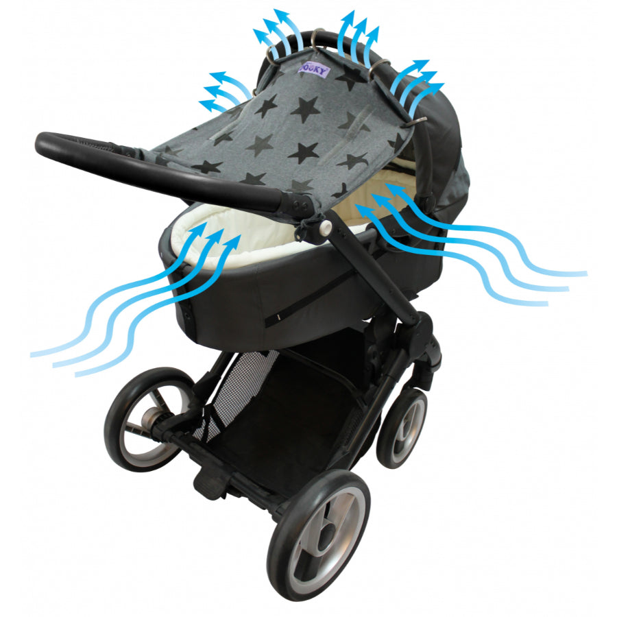 La funda Dooky es universal y fácil de ajustar en segundos a tu cochecito, silla de paseo, carrito y silla de coche 0+. Está hecha de algodón Oekotex de calidad, suave y cómodo, y es lavable a máquina.
