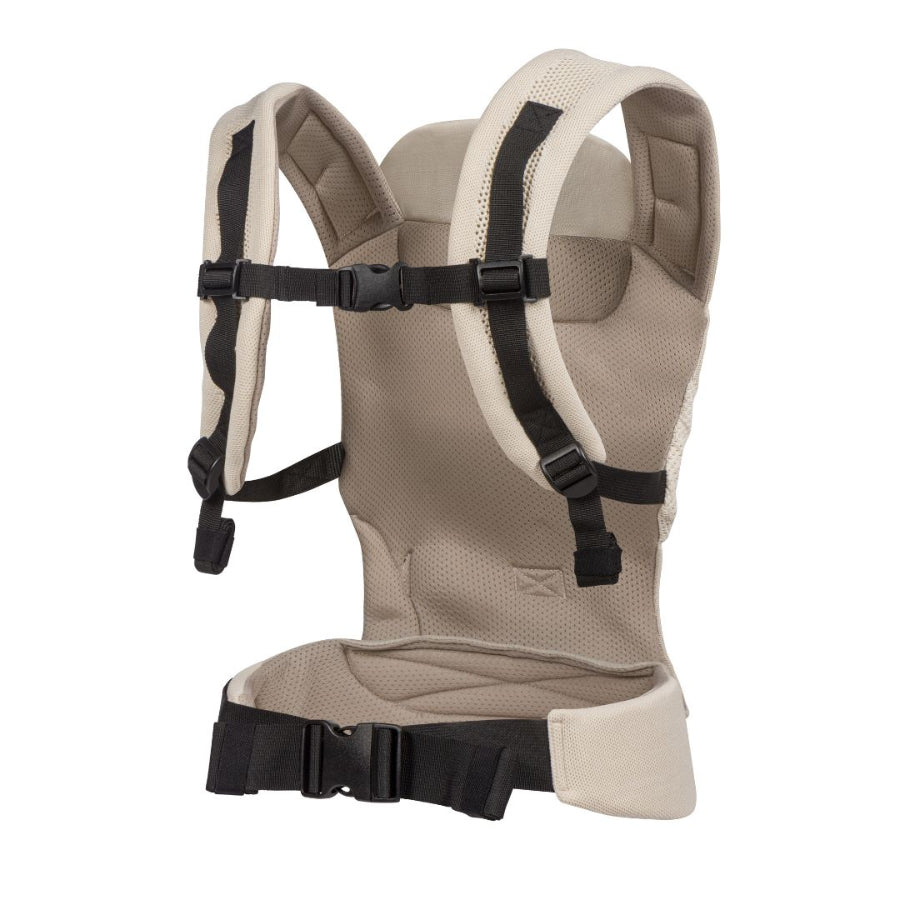 Su diseño ergonómico garantiza una sujeción óptima para las caderas y la columna vertebral del bebé, proporcionándole un espacio cómodo y seguro.