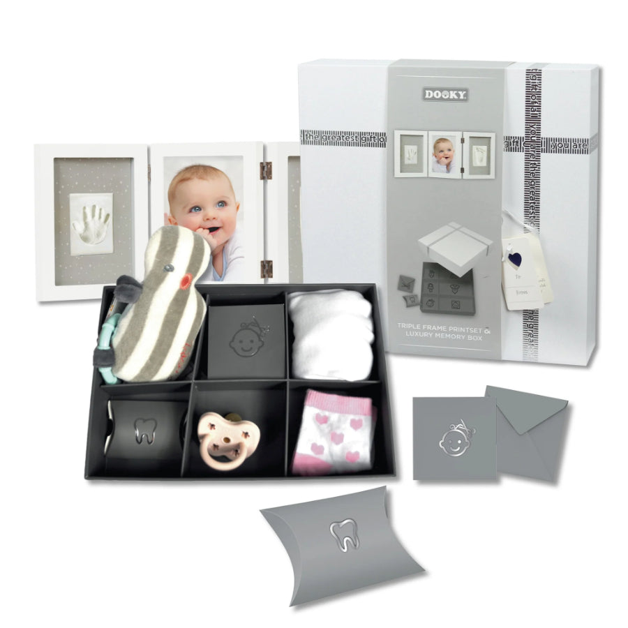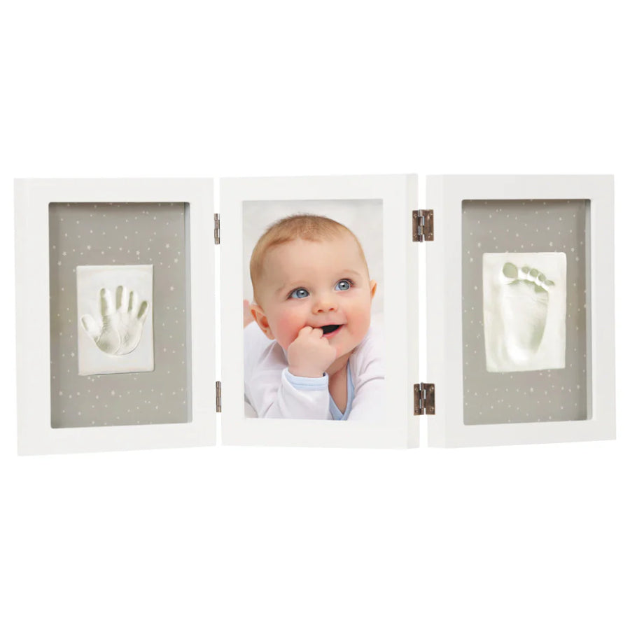 Con este set (huella de mano/marco de fotos + caja de recuerdos) crearás un recuerdo que durará toda la vida. El marco ofrece espacio para una foto, además de la huella de la mano y el pie de tu pequeño. La lujosa caja de recuerdos ofrece espacio para objetos preciados como el chupete, un mechón de pelo, un diente, un pelele, etc. Incluye separadores para la caja, un sobre para el pelo y una caja para los dientes. Ideal como regalo para ti o para otra persona. Fácil de hacer con la arcilla incluida. Material natural, arcilla hipoalergénica. Tamaño del marco: 51 x 21,5 cm