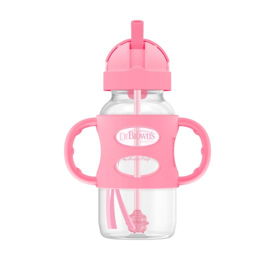 Dr. Brown's - Botella con pajita y cuello ancho | rosa
