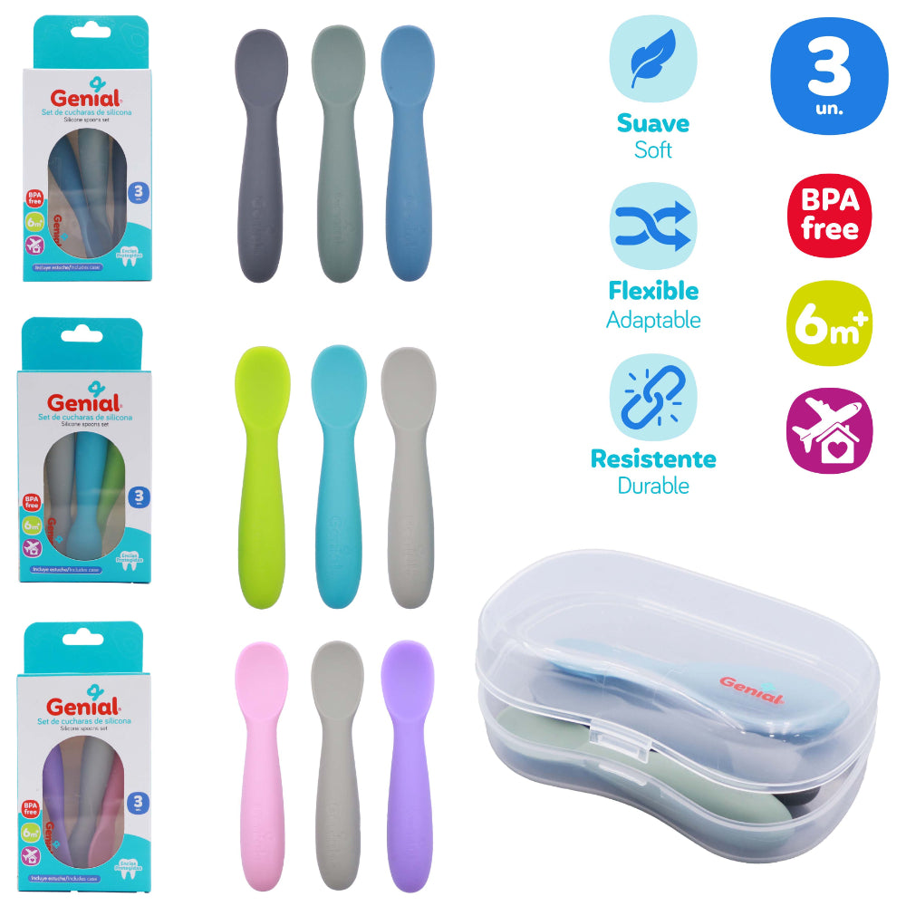 Introduce a tu pequeño en el mundo de los sabores con el Set de Cucharas de Silicona Genial para Bebés 6m+. Diseñadas específicamente para la primera etapa de la alimentación, estas cucharas son la herramienta perfecta para una experiencia de aprendizaje feliz y sin riesgos.