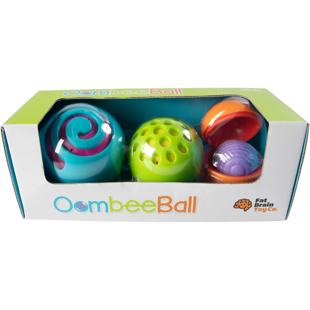 Juego para bebés de bolas texturizadas y atadas que se abren y anidan unas dentro de otras.