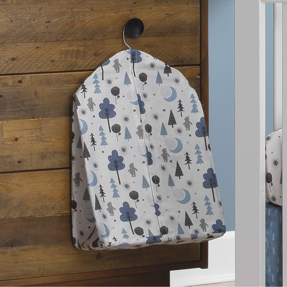 Este apilador de pañales de tierra blanca cuenta con una variedad de árboles de diferentes formas junto con siluetas del oso adorable favorito de todos, Pooh