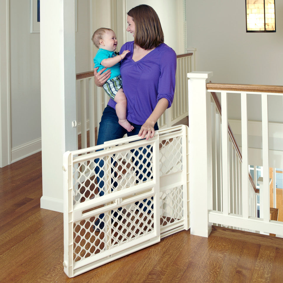 Rápido y fácil de usar, ¡el Toddleroo de North States® Supergate® Ergo en color marfil llega al rescate! Esta versátil puerta mantiene a tu pequeño explorador seguro en casa o si estás de visita en casa de la abuela. Diseñada para bloquear puertas, escaleras y otros espacios de forma segura, la Supergate Ergo se puede usar como una práctica puerta de presión que no requiere medidas ni herramientas. Simplemente expande la puerta en la abertura y bloquea la manija. Ideal para bloquear puertas, la puerta incluye conectores que proporcionan mayor fuerza de sujeción para el montaje a presión en aberturas de entre 66 y 107 cm de ancho.