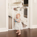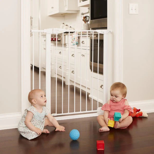 La puerta Toddleroo Tall Bright Choice Auto-Close tiene un acabado blanco nítido que complementará cualquier decoración del hogar, ¡mientras que su construcción de acero resistente está construida para durar! Ideal para una variedad de aberturas de habitaciones o en la parte inferior de escaleras que miden de 29.75 a 40.5 pulgadas de ancho con dos extensiones incluidas y es un extra alto de 36 pulgadas.