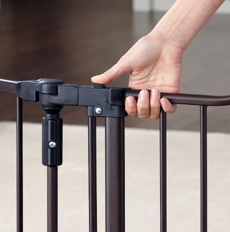 Cuando la puerta no esté en uso, simplemente colóquela fuera del camino. La reja Deluxe Décor Gate se monta en paredes rectas o en ángulo utilizando puntos en los paneles de la puerta. Es ideal para una variedad de aberturas de habitaciones que miden de 38.3 a 72 pulgadas de ancho y tiene 30 pulgadas de alto. La seguridad y tranquilidad adicionales que brinda esta puerta seguramente las complacerá.