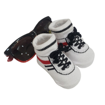 Pon cómodo y con el mejor estilo a tu bebé con estos calcetines de zapatos y lentes de sol con protección contra los rayos UV.