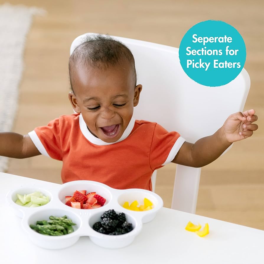 Opciones sabrosas: anime a su pequeño a probar nuevos alimentos con este plato de degustación con 5 secciones coloridas diferentes; cada una con lados profundos que son fáciles de sacar.